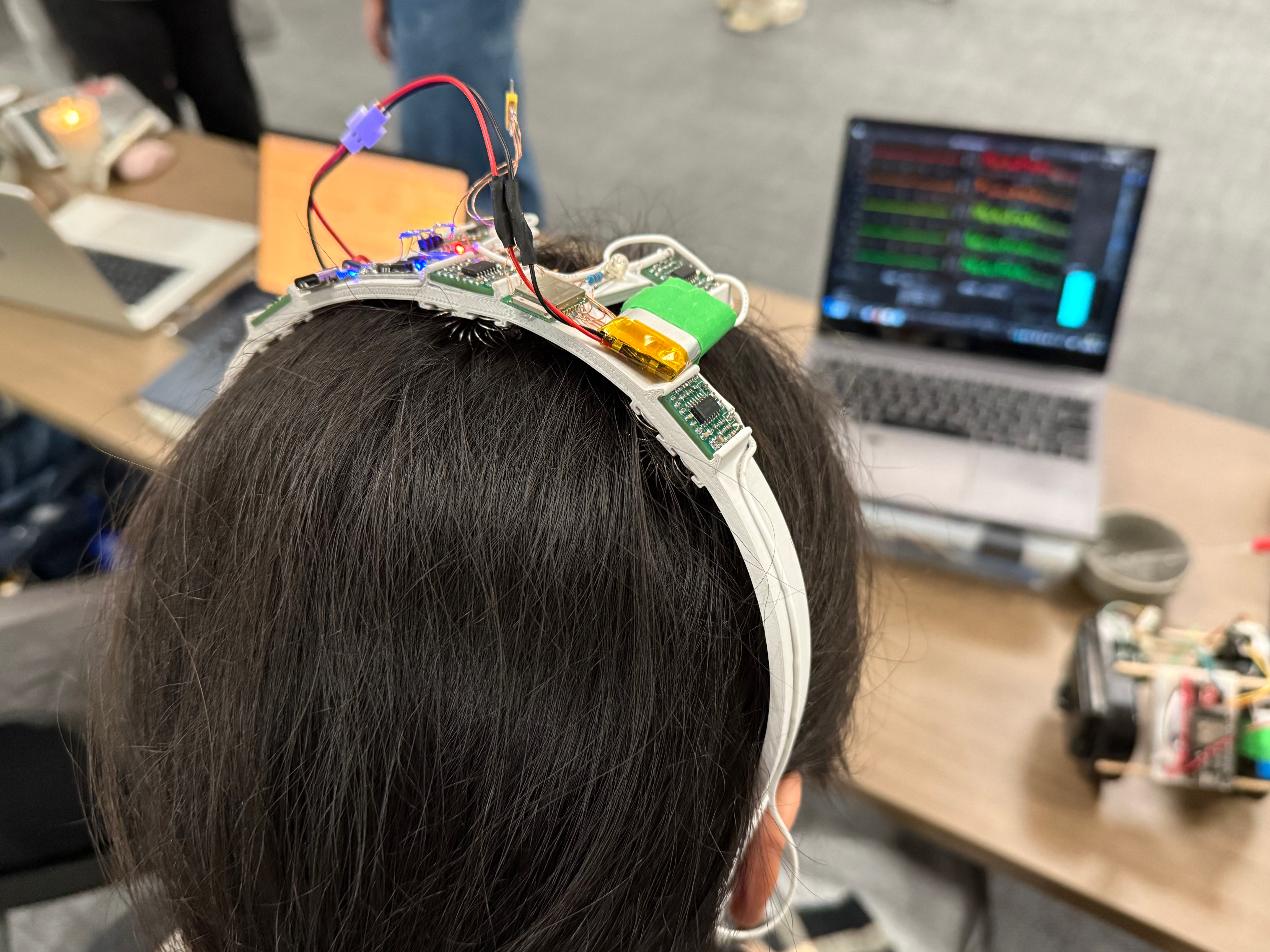 Electroencephalogram (EEG), also known as “brain wave”, is a promising brain computer interface (BCI) technology that is low-cost and noninvasive. Our goal is to build a prototype device that can read EEG, decode the user intent, and use that to control an Arduino Car. The target users would be disabled people who need a different way to control things, hobbyists wanting to try out BCI technologies, and researchers working on EEG related projects. We offer an Embedded ML solution that has low latency for real time control; is affordable (no data transmission and cloud processing costs); is reliable with no need for internet connection; and is private, as users’ EEG signals are sensitive data.